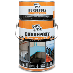 High strength, solvent-based, two-component epoxy paint, highly durable and resistant to abrasion, chemicals and corrosive liquids, mineral oils, both salt and chlorinated water, but also to extreme weather conditions. It has high adhesion strength to concrete and plaster, iron, wood, MDF etc. Efficiently protects and decorates cementitious industrial floors in wineries, dairy plants and cheese factories, kitchens, slaughterhouses, gas stations, garages, car washes and repair shops. Suitable for metal staircases and silos, bridges and ships, lofts made of chipboard, MDF etc. Paint with DUROEPOXY for the absolute protection of water tanks, fountains and pools. Available in three basic colors: white, gray and light blue. Use the Measuring System for Shade Rendering DUROCOLOR of DUROSTICK (20ml syringe packaging) together with the white color to create 120 additional colors. Create antislip surface by broadcasting QUARTZ SAND of DUROSTICK (with grain size from 0.01-0.5mm) on the still-wet surface.