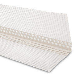 Fixed, symmetric (isosceles) PVC corner bead with fiberglass mesh for the reinforcement of external corners and edges of building openings.