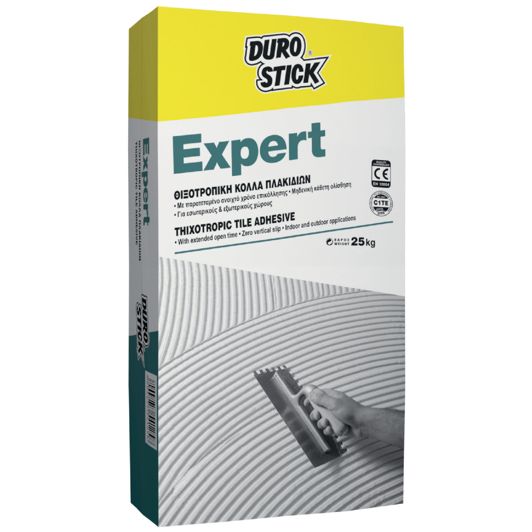 Τσιμεντοειδής, λευκή κόλλα κεραμικών πλακιδίων με παρατεταμένo ανοιχτό χρόνο επικόλλησης και μηδενική κάθετη ολίσθηση. Διαθέτει υψηλή συγκολλητική δύναμη σε τοίχους και δάπεδα για στρώσεις πάχους μέχρι και 10mm. Είναι κατάλληλη για επενδύσεις μονόπυρων και δίπυρων πλακιδίων όλων των τύπων (μικρού μεγέθους για εξωτερικές εφαρμογές και όλων των μεγεθών για εσωτερικές) επάνω σε τοίχους ή δάπεδα από ασβεστοκονίαμα ή τσιμεντοκονίαμα. Η υψηλή της θιξοτροπία, επιτρέπει τη συγκόλληση πλακιδίων σε τοίχους, ακόμη κι από επάνω προς τα κάτω.